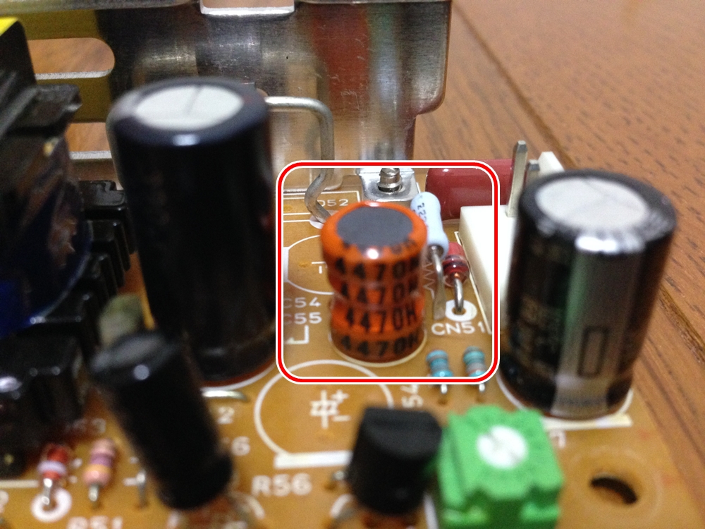電源基板には明らかに寿命がある電解コンデンサが載っているので、一番故障の可能性が高い。