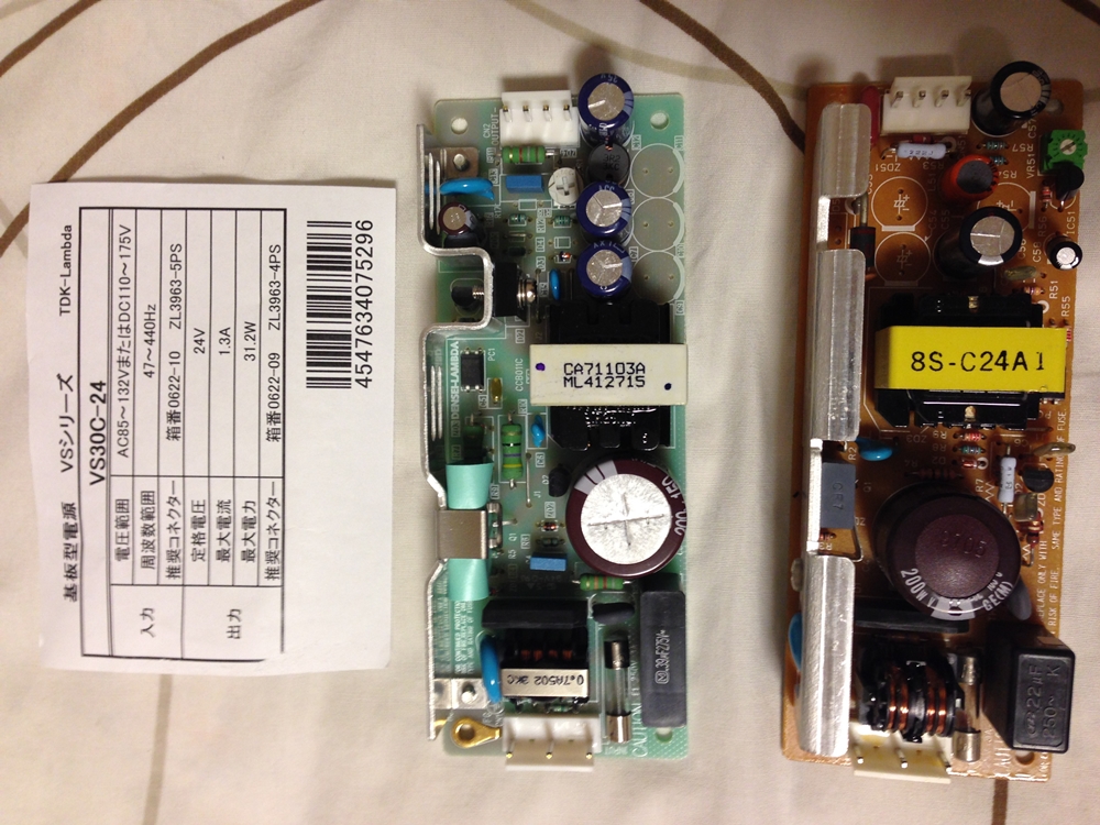 さて、電源基板を購入してきたVS30C-24に交換したら、BINGO!!!